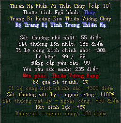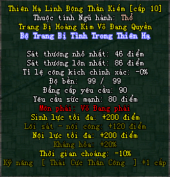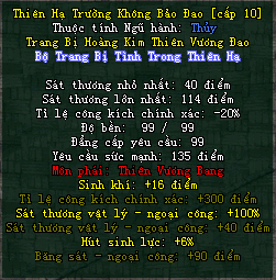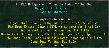 | Thiên Vương Bang | Đồ Phổ Hoàng Kim - Hám Thiên Kim Hoàn Đại Nhãn Thần Chùy | 1 |