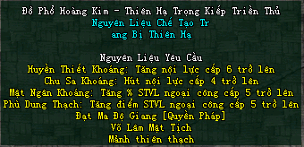 | Đồ Phổ Hoàng Kim - Phục Ma Ô Kim Nhuyễn Điều | 2 | |