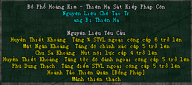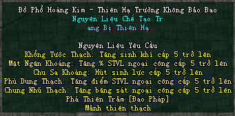| Đồ Phổ Hoàng Kim - Lôi Khung Thiên Địa Hộ Phù | 2 | |