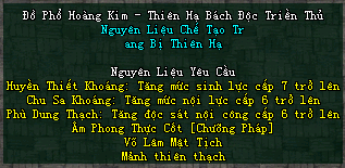 | Thúy Yên Môn | Đồ Phổ Hoàng Kim - Tê Hoàng Phụng Nghi Đao | 2 |