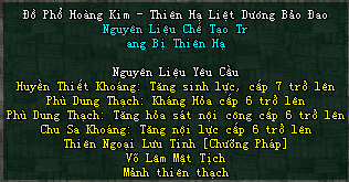 | Đồ Phổ Hoàng Kim - Ngự Long Thiên Môn Thúc Yêu Hoàn | 2 | |