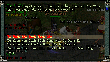 Đăng Ký Tham Gia : Bang Hội Quyết Chiến tại NPC Lôi Đài Bang Hội Khu...